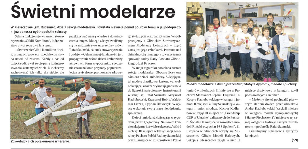 Ponadto stowarzyszenie wraz z Gliwickim Stowarzyszeniem Modelarzy Lotniczych rozpoczyna projekt „Modelarze pomagają”. W jego ramach wykonywane są elementy modelarskie dla dzieci i młodzieży, rozprowadzane w naszym powiecie i Gliwicach.